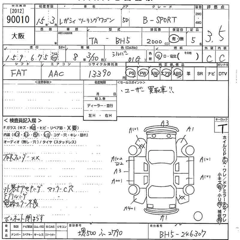 | 2.0GT SPEC.B | TA-BP5 | EJ20 | Full-time 4WD | 5MT | 1994cc | 280ps(206kW)/6400rpm | AИ-95 | 3 030 000 | |