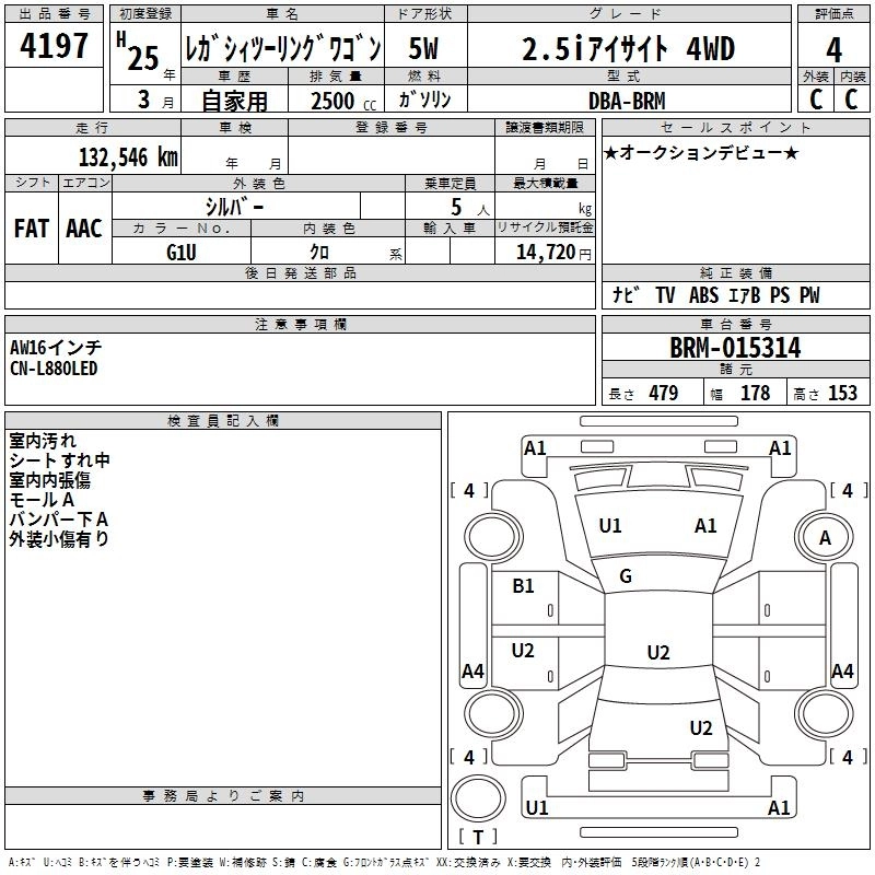 2.5I B SPORT DBA-BRM FB25 Full-time 4WD CVT 2498cc 173ps(127kW)/5600rpm AИ-92 2 520 000