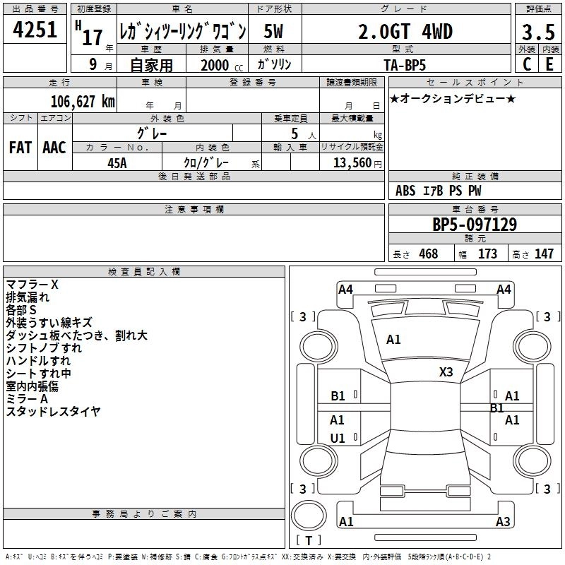 | 2.0GT WR-LIMITED 2005 | TA-BP5 | EJ20 | Full-time 4WD | 5AT | 1994cc | 260ps(191kW)/6000rpm | AИ-95 | 3 276 000 |