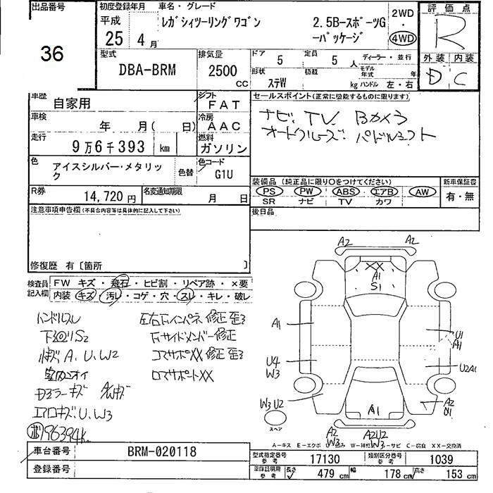 SUBARU LEGACY WAGON 2013 г., лот № 36
