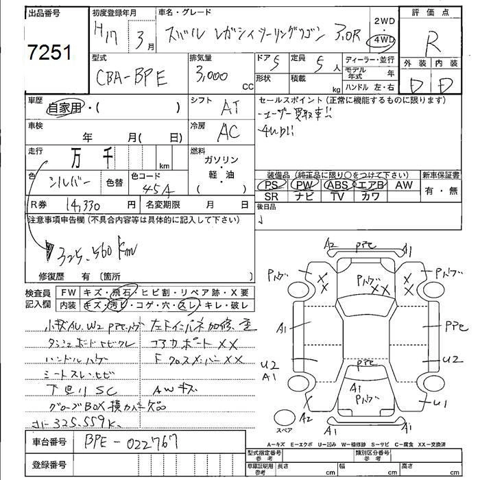 SUBARU LEGACY WAGON 2005 г., лот № 7251