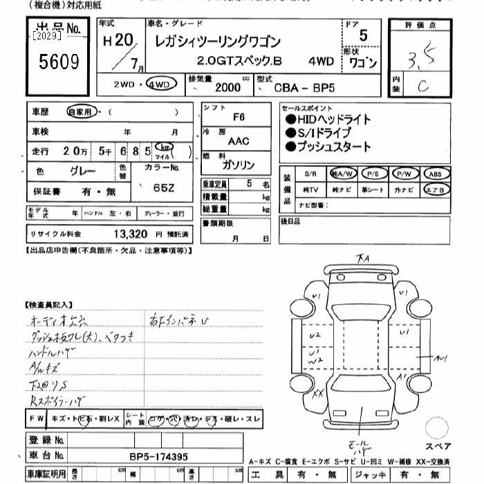 Год выпуска2008 Пробег 205 000 км КузовBP5 Комплектация4WD 2.0GT SPECIFICATIONS.B