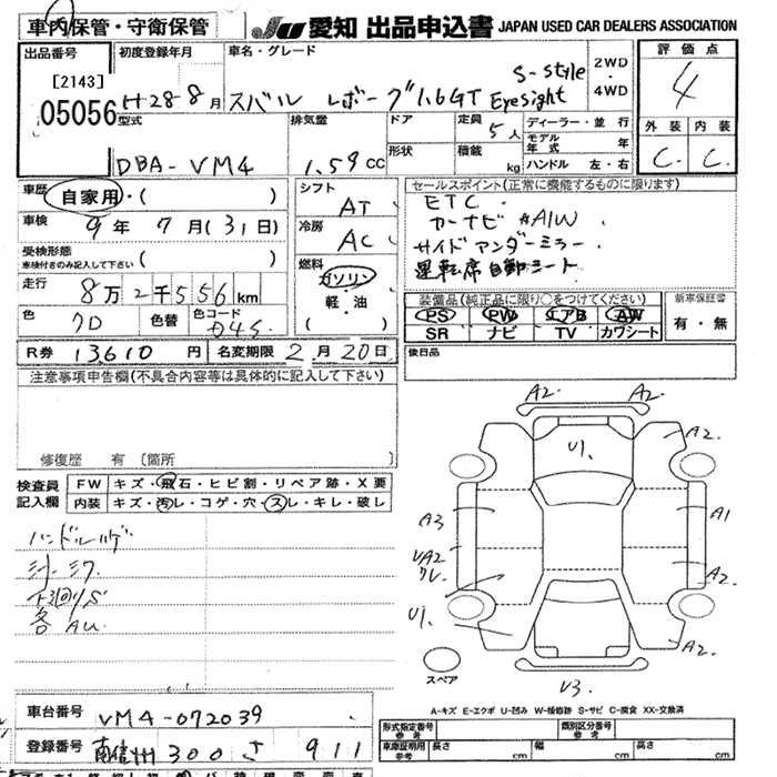 | 1.6GT EYE SIGHT S STYLE | DBA-VM4 | FB16 | Full-time 4WD | CVT | 1599cc | 170ps(125kW)/4800~5600rpm | AИ-92 | 2 905 200 | |