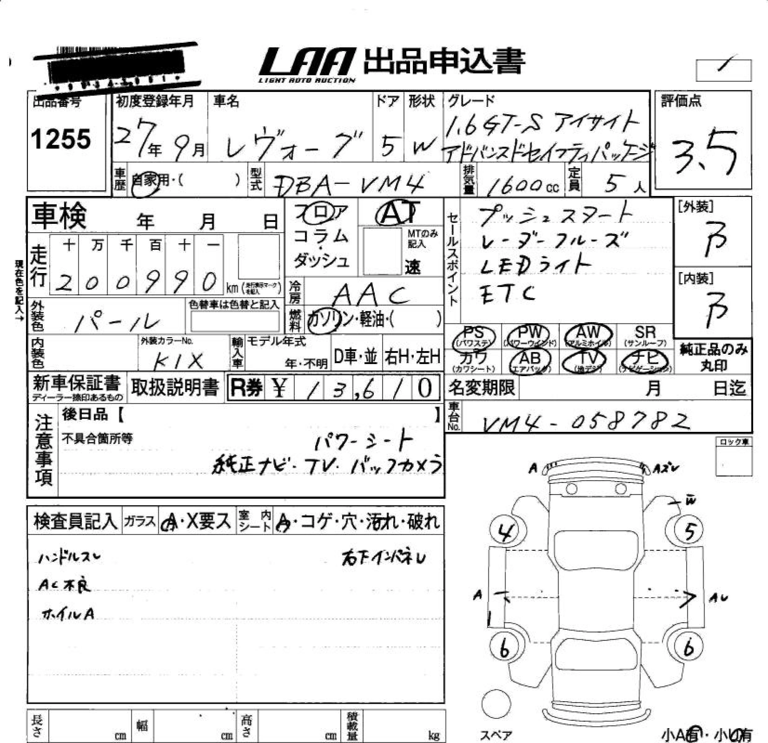 | 1.6GT EYE SIGHT | DBA-VM4 | FB16 | Full-time 4WD | CVT | 1599cc | 170ps(125kW)/4800~5600rpm | AИ-92 | 2 775 600 |