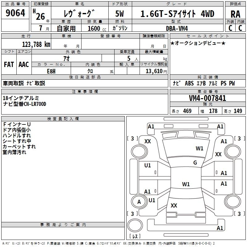 | 1.6GT | DBA-VM4 | FB16 | Full-time 4WD | CVT | 1599cc | 170ps(125kW)/4800~5600rpm | AИ-92 | 2 667 600 |