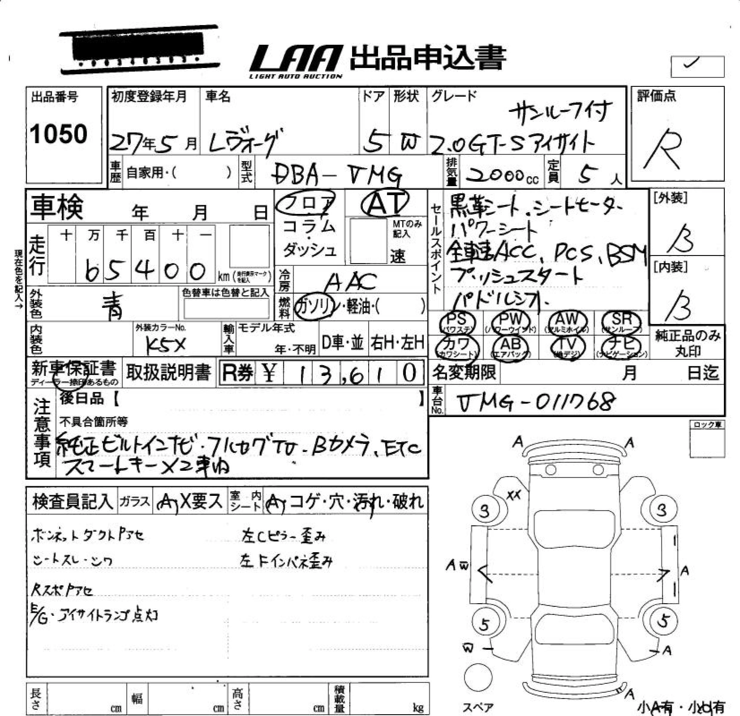 SUBARU LEVORG 2015 г., лот № 1050