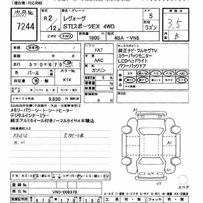 | STI SPORT EX | 4BA-VN5 | CB18 | Full-time 4WD | CVT | 1795cc | 177ps(130kW)/5200~5600rpm | AИ-92 | 4 092 000 | |