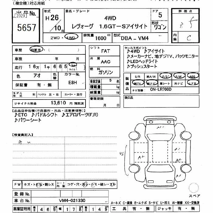 SUBARU LEVORG 2014 г., лот № 5657