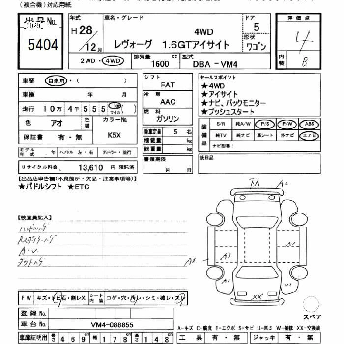 | 1.6GT EYE SIGHT | DBA-VM4 | FB16 | Full-time 4WD | CVT | 1599cc | 170ps(125kW)/4800~5600rpm | AИ-92 | 2 775 600 |