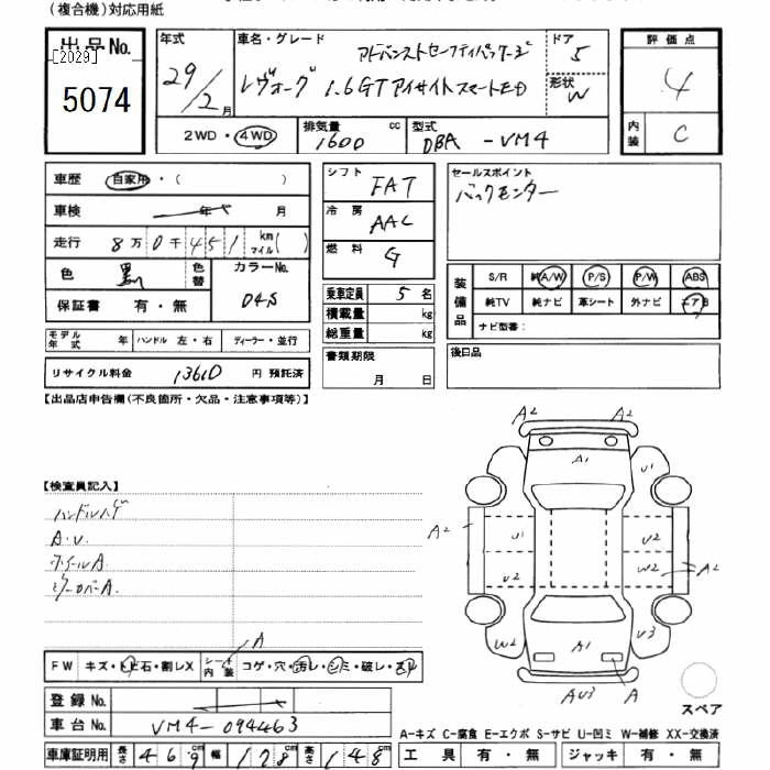 SUBARU LEVORG 2017 г., лот № 5074