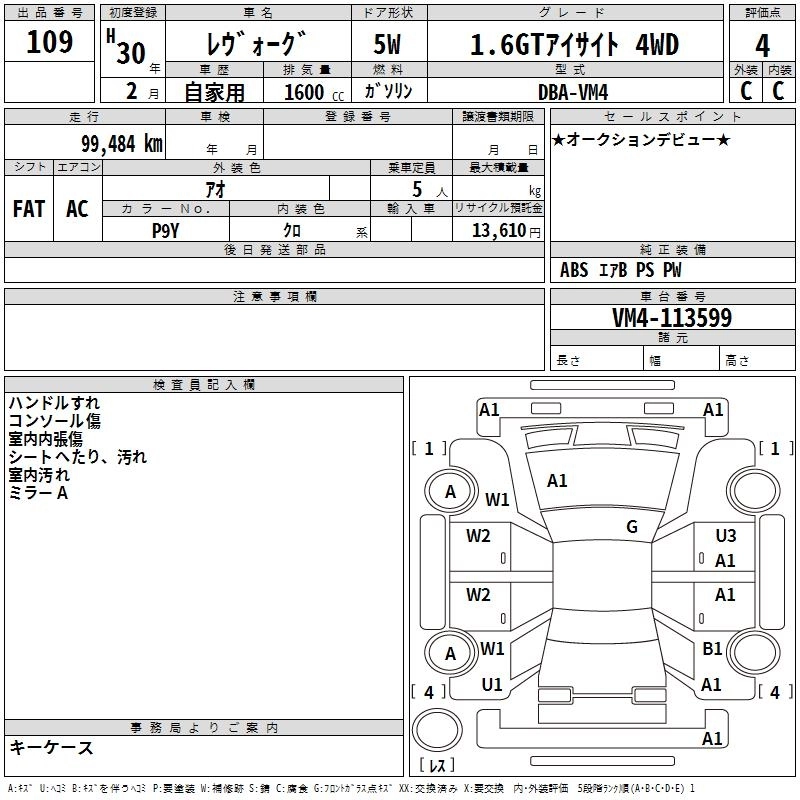 | 1.6GT EYE SIGHT SMART EDITION | DBA-VM4 | FB16 | Full-time 4WD | CVT | 1599cc | 170ps(125kW)/4800~5600rpm | AИ-92 | 2 948 400 | |