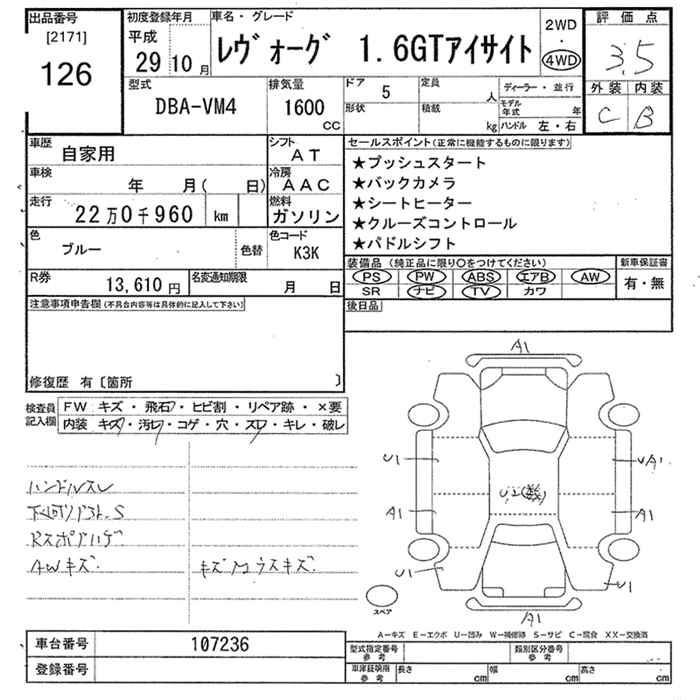 | 1.6GT EYE SIGHT | DBA-VM4 | FB16 | Full-time 4WD | CVT | 1599cc | 170ps(125kW)/4800~5600rpm | AИ-92 | 2 829 600 |