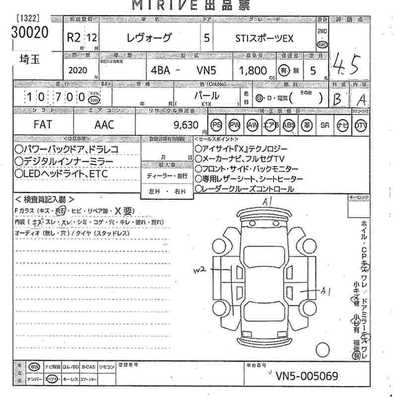 | STI SPORT EX | 4BA-VN5 | CB18 | Full-time 4WD | CVT | 1795cc | 177ps(130kW)/5200~5600rpm | AИ-92 | 4 092 000 | |