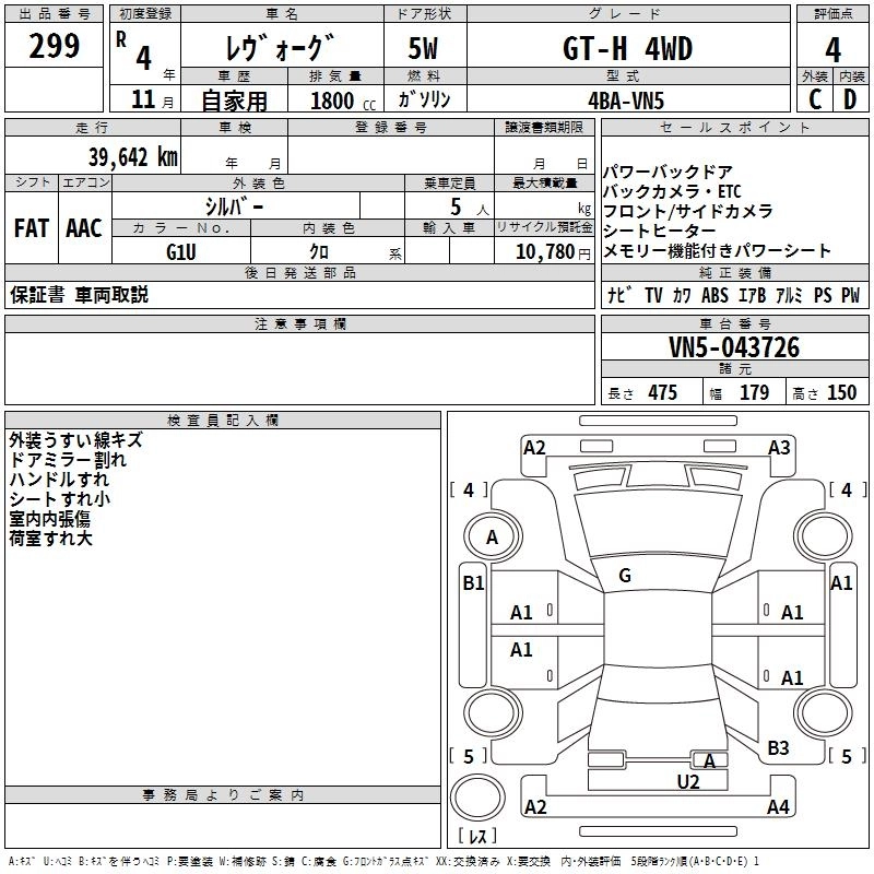 SUBARU LEVORG 2022 г., лот № 299