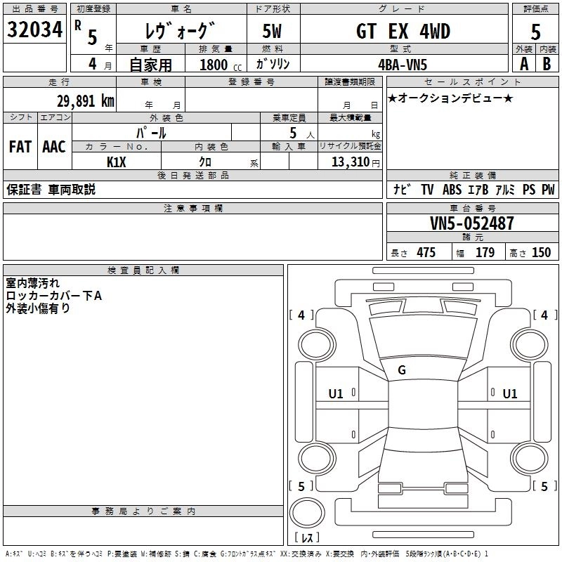 SUBARU LEVORG 2023 г., лот № 32034