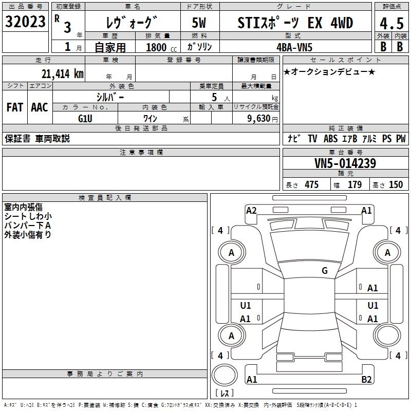 SUBARU LEVORG 2021 г., лот № 32023