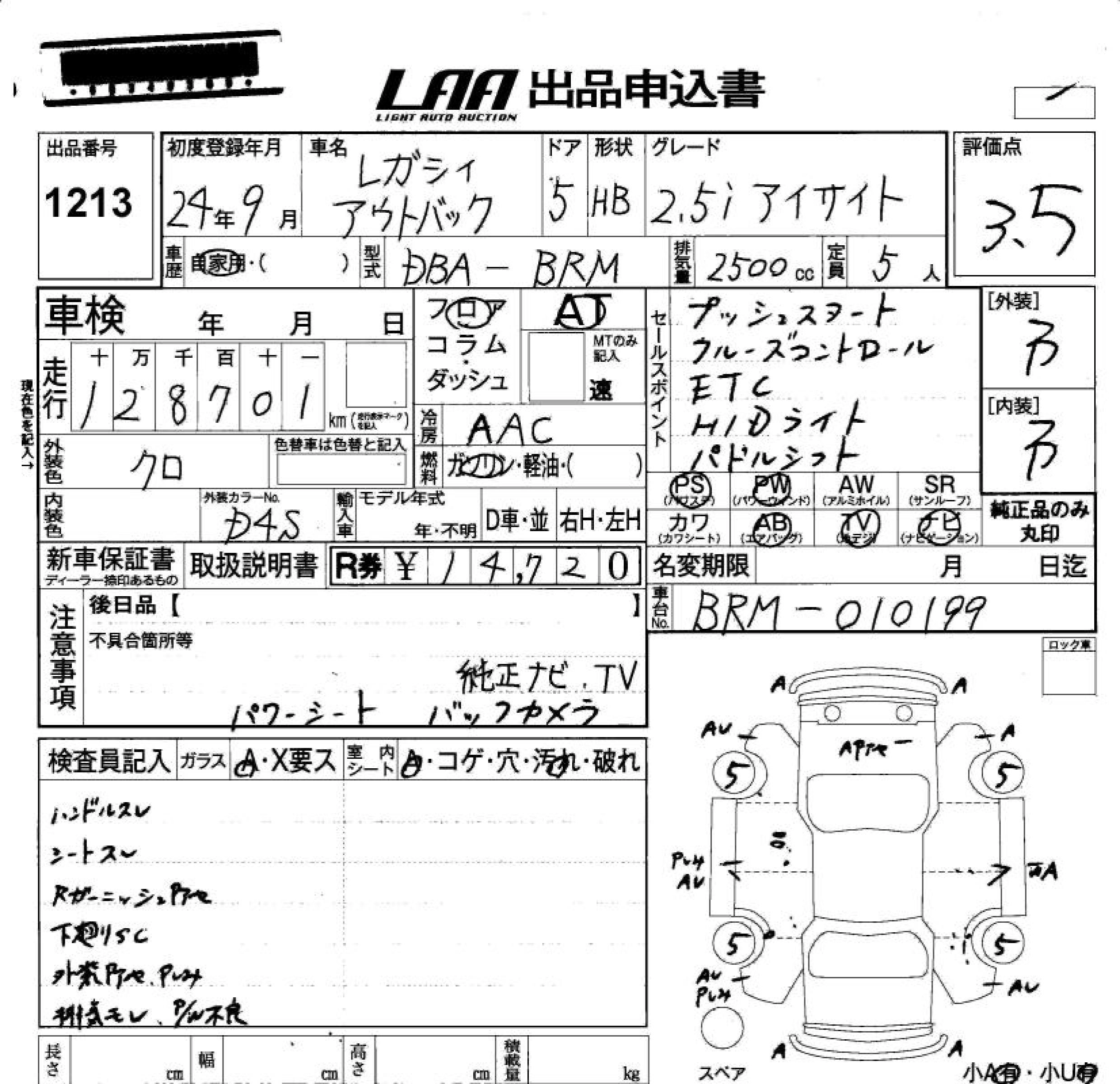 Год выпуска2012 Пробег 129 000 км КузовBRM Комплектация2.5I EYESIGHT