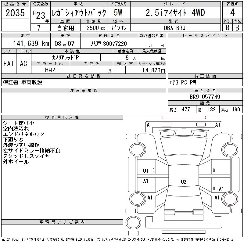 Год выпуска2011 Пробег 142 000 км КузовBR9 Комплектация2.5I EYESIGHT 4WD