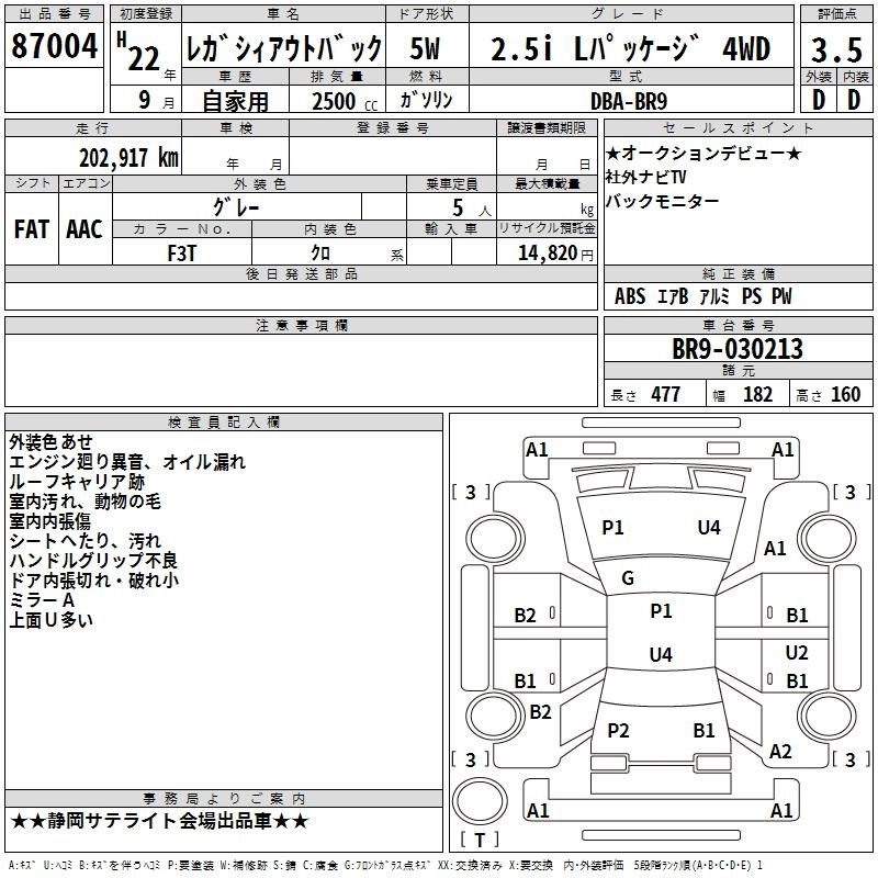 Год выпуска2010 Пробег 203 000 км КузовBR9 Комплектация2.5I L PACKAGE 4WD