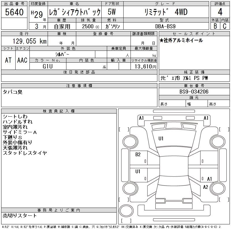 SUBARU OUTBACK 2017 г., лот № 5640