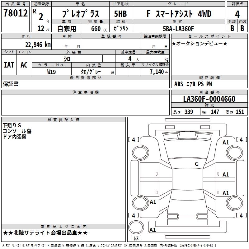 | F | 5BA-LA350F | KF | FF | CVT | 658cc | 49ps(36kW)/6800rpm | AИ-92 | 913 000 | |