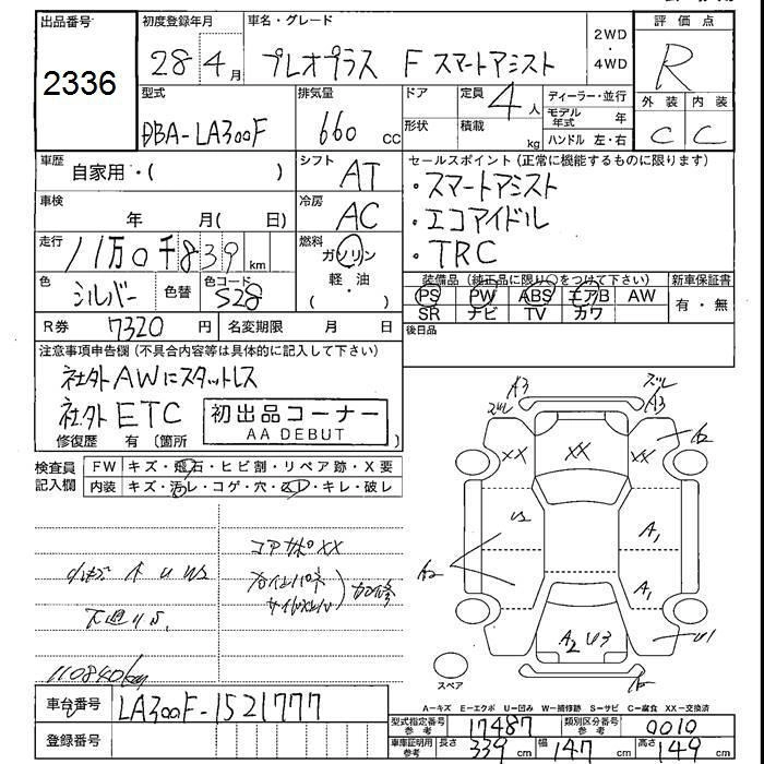 SUBARU PLEO PLUS 2016 г., лот № 2336