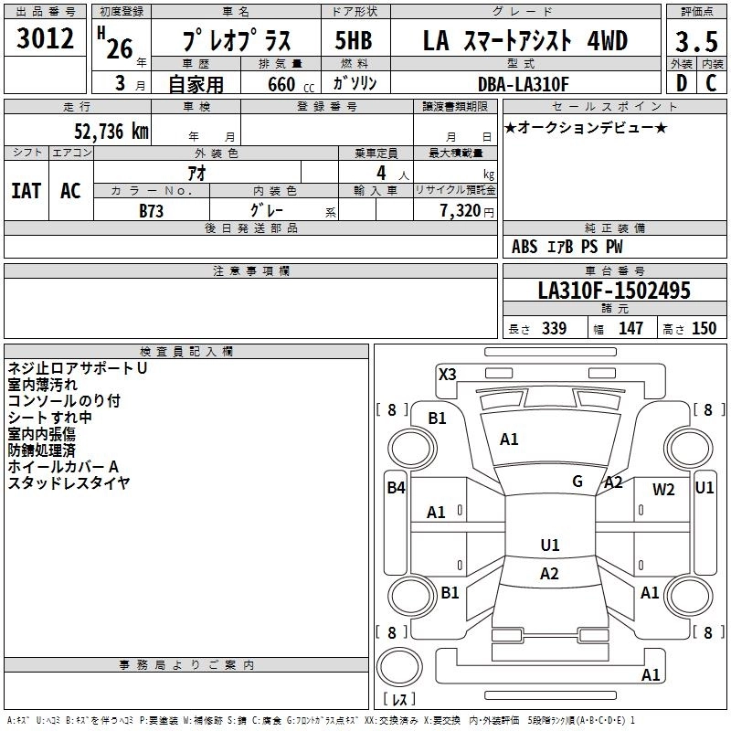 | GA SMART ASSIST ALPHA | DBA-LA310F | KF | Full-time 4WD | CVT | 658cc | 49ps(36kW)/6800rpm | AИ-92 | 1 316 700 | |
