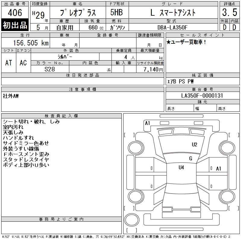 | F | DBA-LA350F | KF | FF | CVT | 658cc | 49ps(36kW)/6800rpm | AИ-92 | 896 400 | |