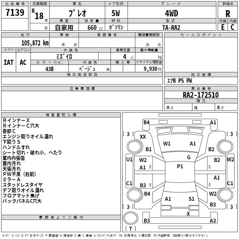 SUBARU PLEO 2006 г., лот № 7139
