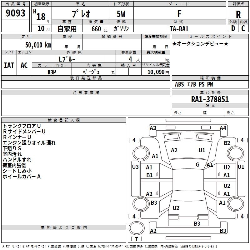 SUBARU PLEO 2006 г., лот № 9093