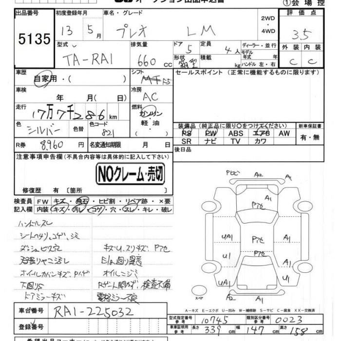 | FII | TA-RA1 | EN07 | FF | 5MT | 658cc | 46ps(34kW)/6000rpm | AИ-92 | 850 000 | |