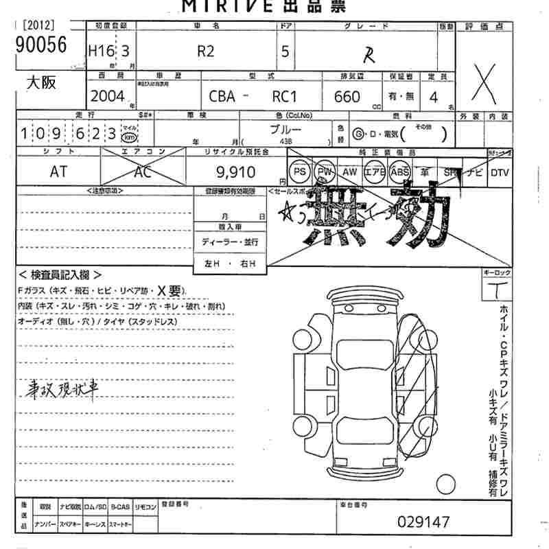 Статус выставлен на аукцион Лот 90056 Аукцион MIRIVE Osaka Дата аукциона 29.01.2026