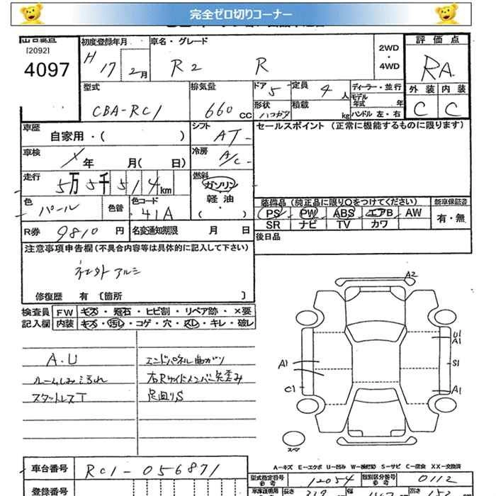 R DBA-RC1 EN07 FF 5MT 658cc 54ps(40kW)/6400rpm AИ-92 1 081 500