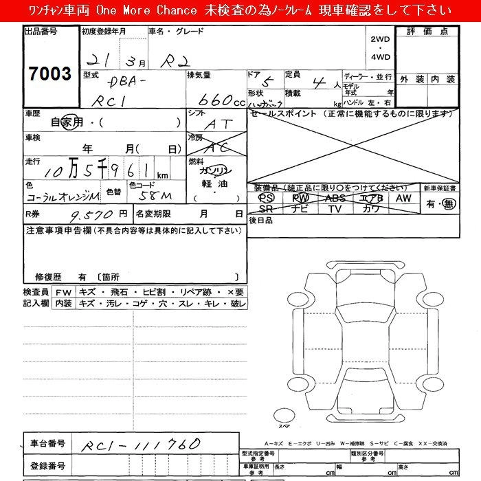 | SMART SELECTION | DBA-RC1 | EN07 | FF | CVT | 658cc | 46ps(34kW)/6000rpm | AИ-92 | 908 250 | |