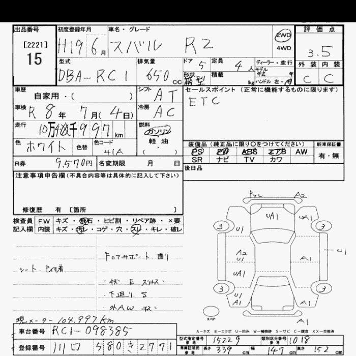 | REFI | DBA-RC2 | EN07 | Full-time 4WD | CVT | 658cc | 46ps(34kW)/6000rpm | AИ-92 | 1 054 200 | |