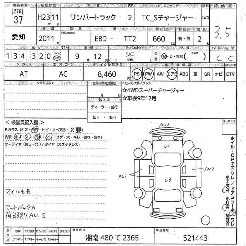 SUBARU SAMBAR TRUCK 2011 г., лот № 37