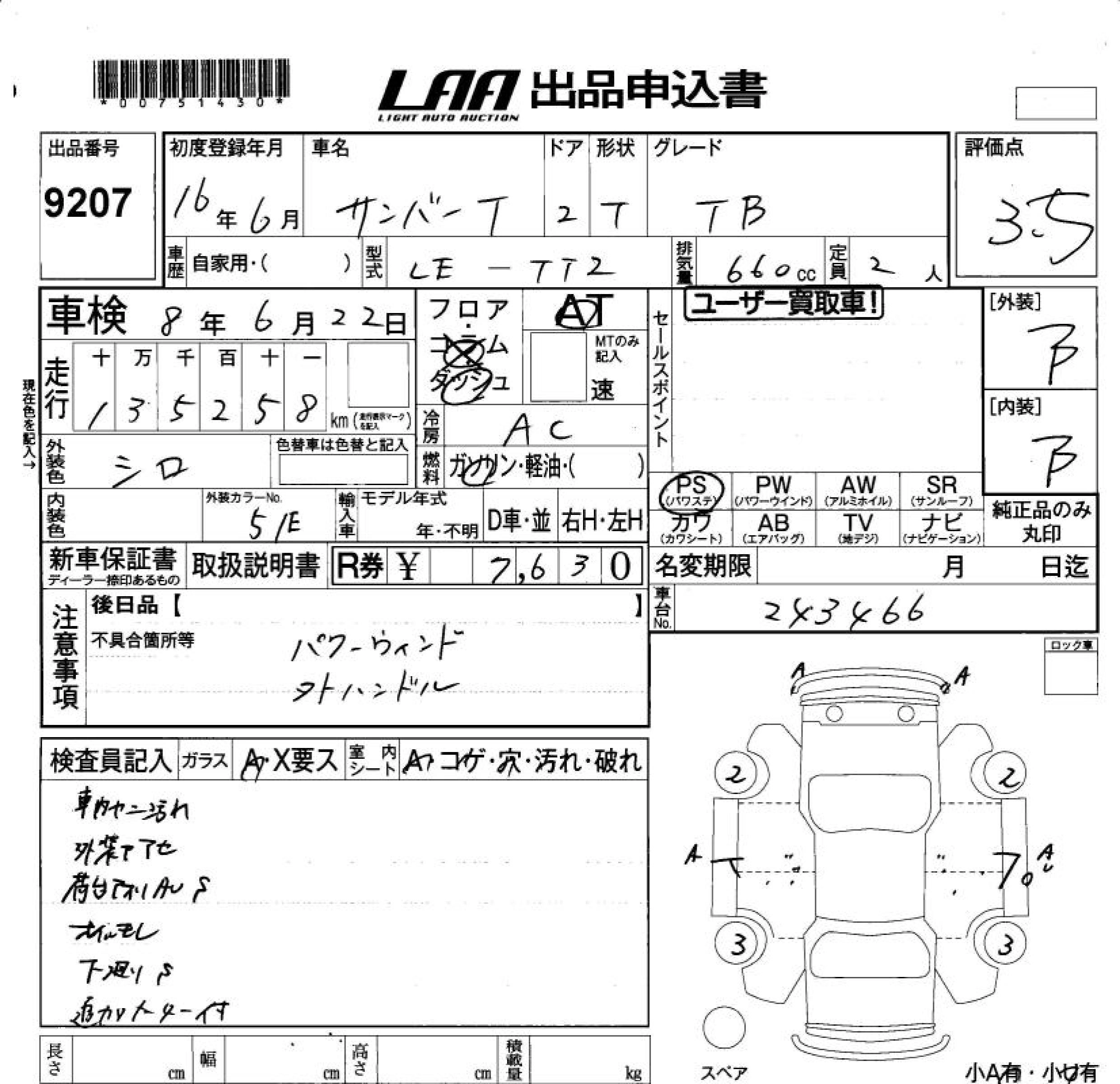 Статус выставлен на аукцион Лот 9207 Аукцион LAA Okayama Дата аукциона 30.01.2026