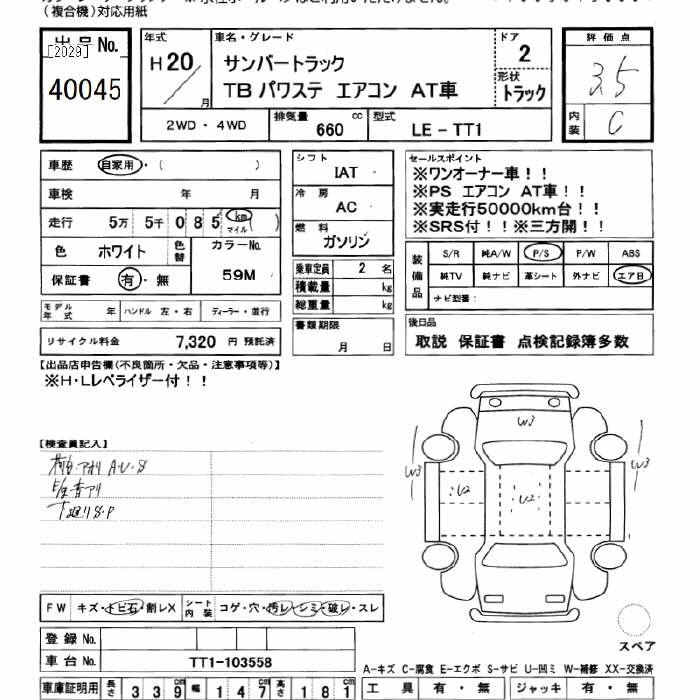 SUBARU SAMBAR TRUCK 2008 г., лот № 40045
