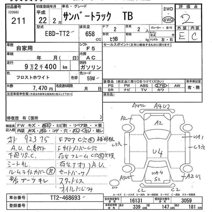 SUBARU SAMBAR TRUCK 2010 г., лот № 211