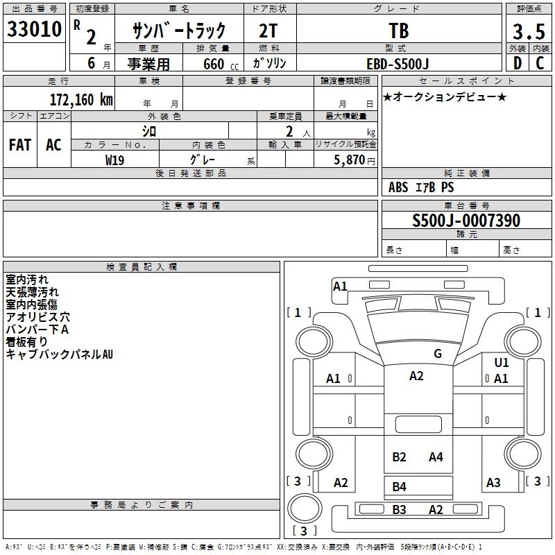 SUBARU SAMBAR TRUCK 2020 г., лот № 33010