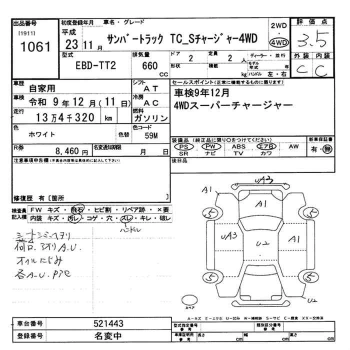 SUBARU SAMBAR TRUCK 2011 г., лот № 1061