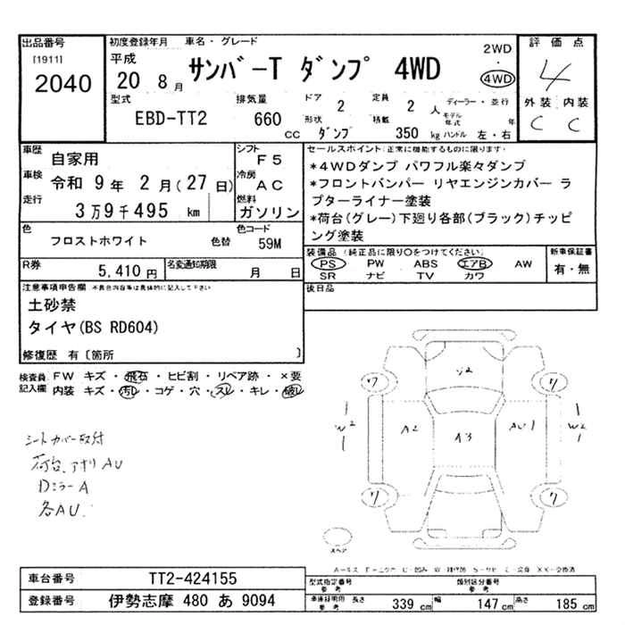 SUBARU SAMBAR TRUCK 2008 г., лот № 2040