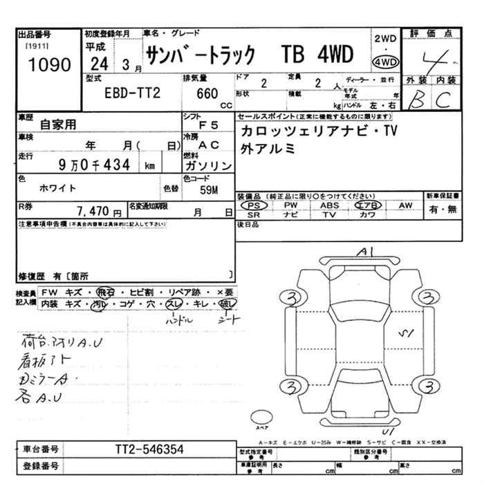 SUBARU SAMBAR TRUCK 2012 г., лот № 1090