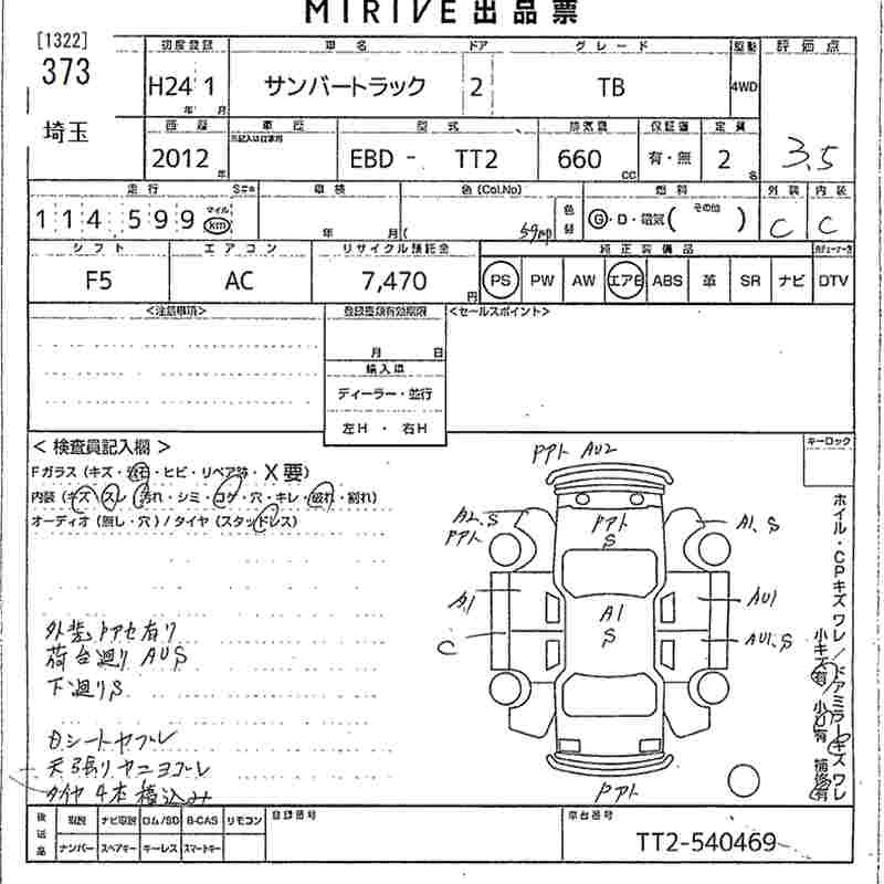 SUBARU SAMBAR TRUCK 2012 г., лот № 373