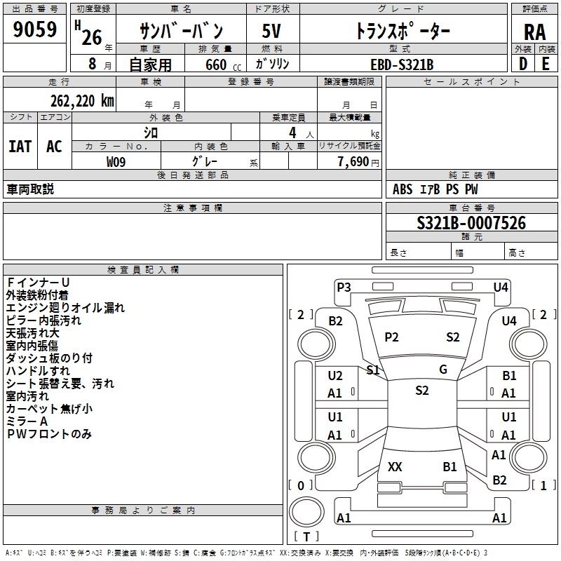 SUBARU SAMBAR VAN 2014 г., лот № 9059