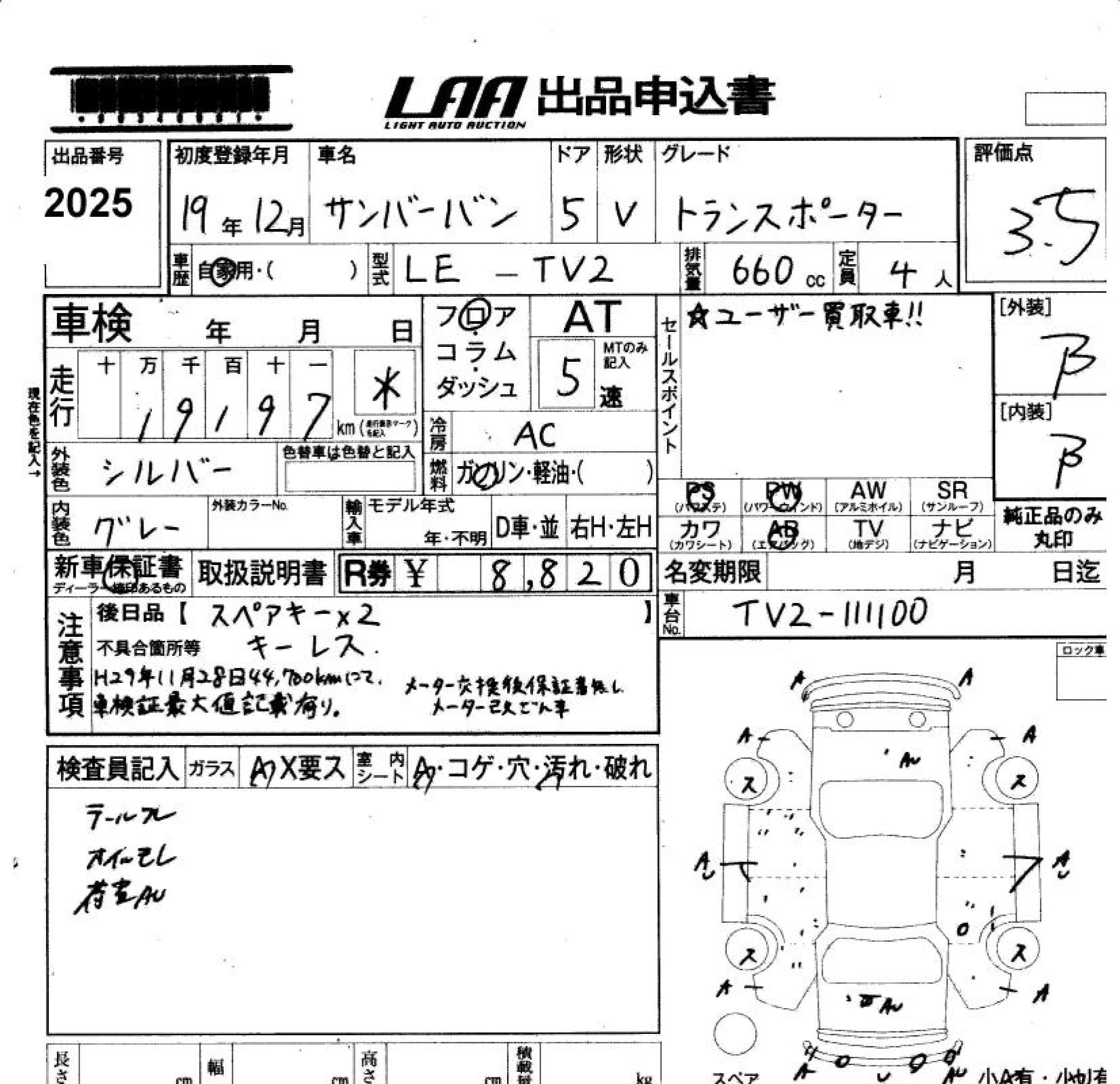 Статус выставлен на аукцион Лот 2025 Аукцион LAA Okayama Дата аукциона 30.01.2026