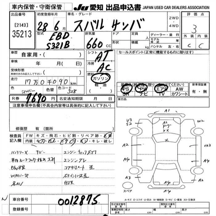 SUBARU SAMBAR VAN 2016 г., лот № 35213