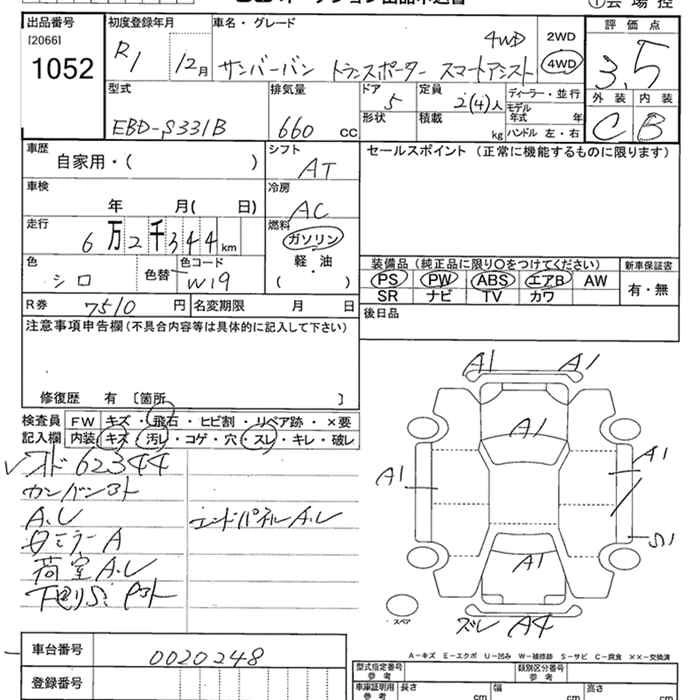 SUBARU SAMBAR VAN 2019 г., лот № 1052