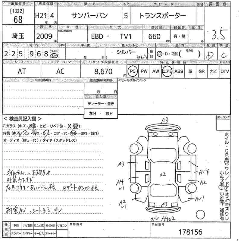 SUBARU SAMBAR VAN 2009 г., лот № 68