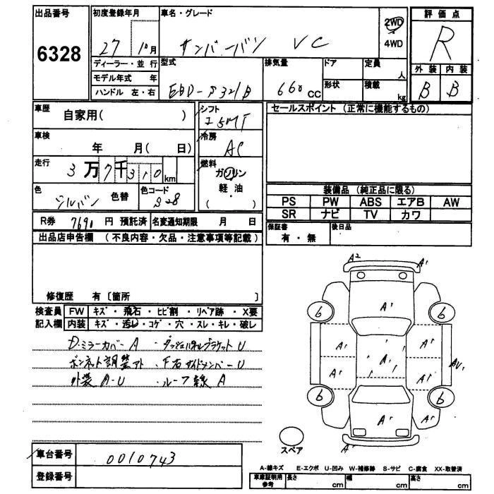 SUBARU SAMBAR VAN 2015 г., лот № 6328